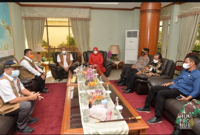 – Wakil Gubernur Kepri Marlin Agustina menyambut kedatangan Kepala BNPB Letjend TNI Ganip Warsito berserta rombongan di VIP Bandara Hang Nadim Batam