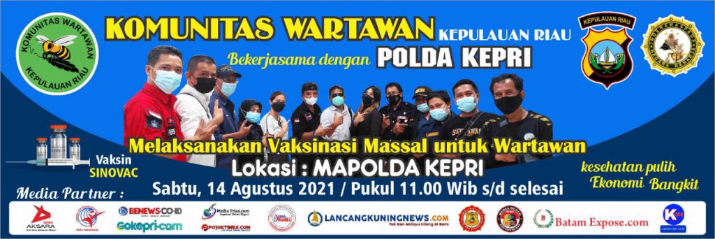 LANCANGKUNINGNEWS.COM, Batam – Komunitas Wartawan Kepri, yang terdiri dari wartawan dari beragam organisasi Pers ditanah air, bekerjasama dengan Intelkam Polda Kepri akan melaksanakan Vaksinasi massal untuk kalangan Jurnalis yang ada di Kepulauan Riau dan juga masyarakat umum yang belum pernah mendapatkan Vaksinasi sebelumnya.