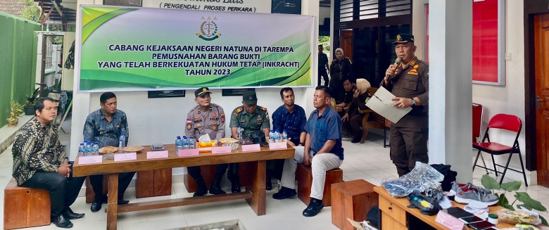 Kacabjari anambas mengatakan, kegiatan ini berupa Pemusnahan Barang Bukti yang telah (Inkracht) Berdasarkan Putusan PN/MA.Jo.SP Kacab Kejaksaan Negeri Natuna di Tarempa / P-48 amarnya  memutuskan/ memerintahkan barang bukti berupa (sebagaimana terlampir dalam BAP) dalam perkara Terpidana, dirampas untuk di musnahkan sehingga tidak dapat dipergunakan lagi, Sementara itu  yang akan dilelang sudah berjalan seperti motor roda dua dan yang lainnya, kata Josron S Malau.