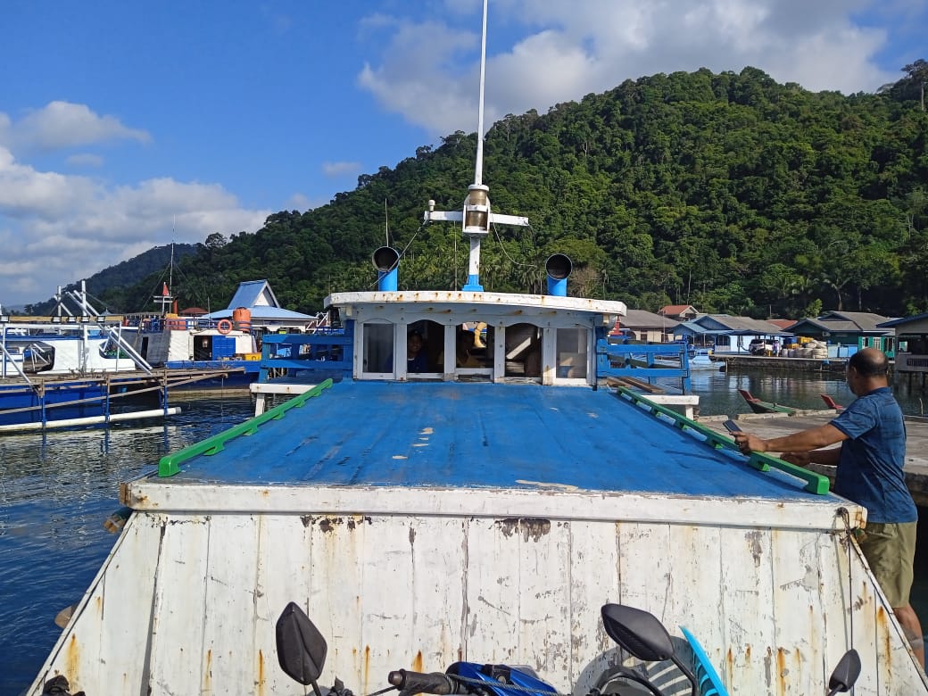 lancangkuningnews.com, Anambas 14/9/202. -KM Nelayan Abadi memiliki armada angkutan umum jenis pompong untuk melayani penumpang tujuan Desa Kuala Maras-Tarempa, kapal tersebut sebelumnya berupa armada khusus cargo didesain menjadi kapal penumpang berlayar dari pelabuhan Kuala maras setiap hari kamis pukul 8.00 wib dalam satu Minggu di kabupaten anambas kepulauan Riau. (14/9/2023)