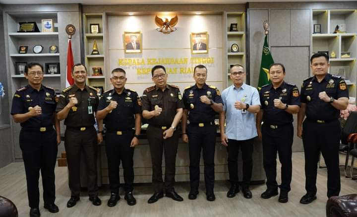 TANJUNGPINANG – lancangkuningnews.com : Kepala Kejaksaan Tinggi Kepulauan Riau Teguh Subroto, SH., MH., menerima kunjungan kerja Kepala Kantor Wilayah DJBC Khusus Kepulauan Riau Priyono Triatmojo, SE., MM., dan Kepala Kantor Pelayanan Utama (KPU) Bea Cukai Tipe B Batam Rizal, SH., Kepala Kantor Pelayanan dan Pengawasan Bea Cukai Tipe B Tanjungpinang Tri Hartana, SE., AK., MM., Kabid Penyidikan dan Barang Hasil Penindakan Kanwil Bea Cukai Kepri Horas Mardapot Baja Sinaga, dan Kabid Penindakan dan Penyidikan KPU BC Tipe B Batam Sisprian Subiaksono, SE., MM., diruang kerja Kajati Kepri dalam rangka silaturahmi bersama jajaran Kejati Kepri, Selasa (23/04/2024)
