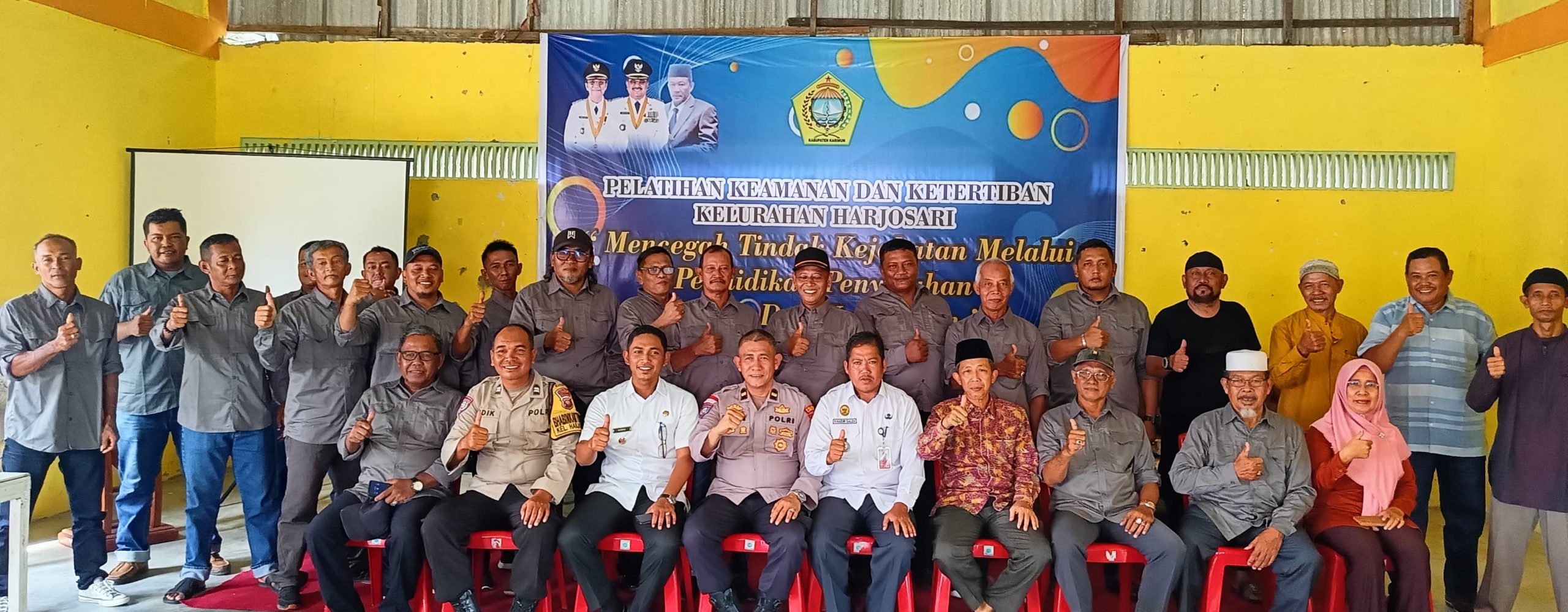 Hadir dalam kegiatan ini antara lain Seklur Harjosari Rismawati, S.Pd.SD, Kasipem Harjosari Herliswati, A.Md, Ketua LPM H. Salam, Ketua FKPM Suroto, Kanit Binmas Polsek Tebing Ipda Felly Eka Saputra, S.Ikom, Kasubsi Datun Kejaksaan Karimun Angga Karona, S.H, dan Bhabinkamtibmas Kelurahan Harjosari Aiptu Didik Hariyanto, S.H.