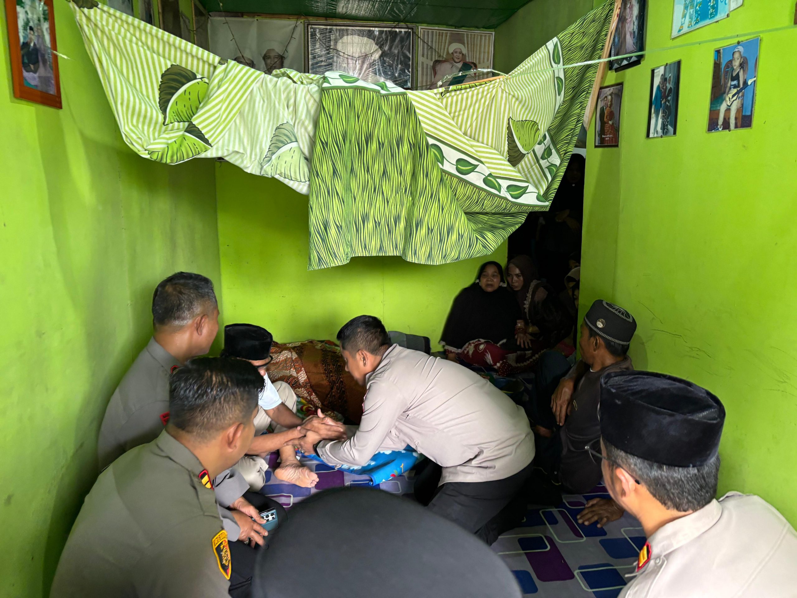 Kapolres Indragiri Hilir bersama jajarannya turut menyampaikan rasa duka cita mendalam kepada keluarga korban saat berkunjung ke rumah duka.