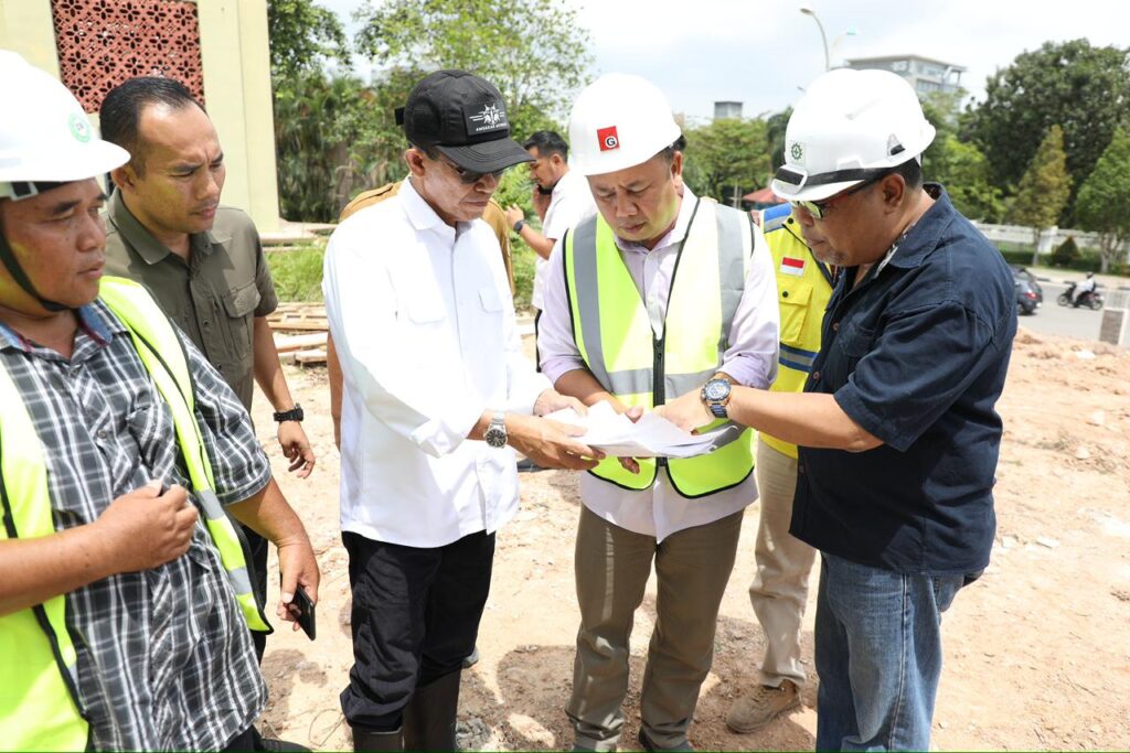 Batamcentre — Proyek prestisius Masjid Agung Raja Hamidah Batamcentre terus digesa penyelesaiannya. Pada hari Senin (13/10/2025), Wali Kota Batam, Amsakar Achmad, turun langsung ke lokasi untuk meninjau progres pembangunan, memastikan setiap detail berjalan sesuai dengan rencana induk yang telah ditetapkan.
