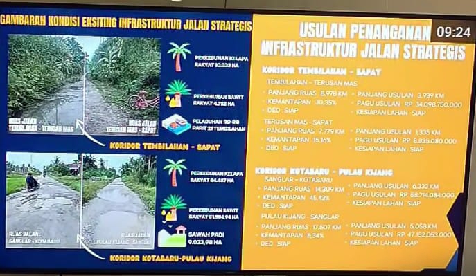 Dalam paparannya, Pemkab Inhil menyampaikan sejumlah poin strategis pembangunan yang membutuhkan dukungan pemerintah pusat, di antaranya peningkatan kualitas jalan nasional, provinsi, dan kabupaten, serta pembaruan usulan pembangunan ruas jalan strategis pada koridor ekonomi rakyat dan konektivitas antarwilayah.
