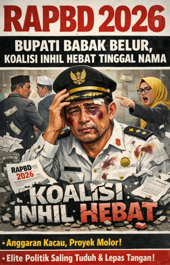 Publik menyaksikan satu pemandangan yang sulit dibantah: Bupati H. Herman berdiri sendirian, dihujani kritik dari berbagai arah, sementara Koalisi Inhil Hebat—yang dahulu lantang menjual janji perubahan—kini memilih diam, menghilang, dan menjadi penonton yang tak bertanggung jawab.