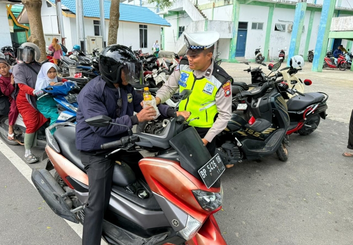 Anambas, Lancangkuningnews.com – Satlantas Polres Anambas melaksanakan kegiatan Jumat Berkah dengan membagikan minyak goreng kepada pengendara roda 2 yang tertib berlalu lintas di Simpang RSUD, Jumat (23/1/2026).